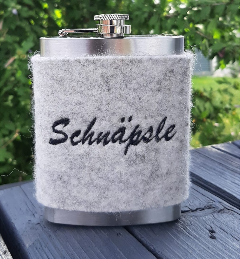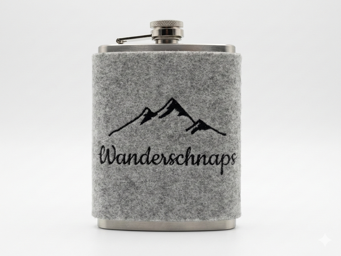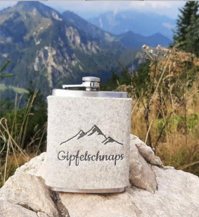 Dein treuer Begleiter für Gipfelglück & Geselligkeit - Flachmann mit Wollfilzmanschette