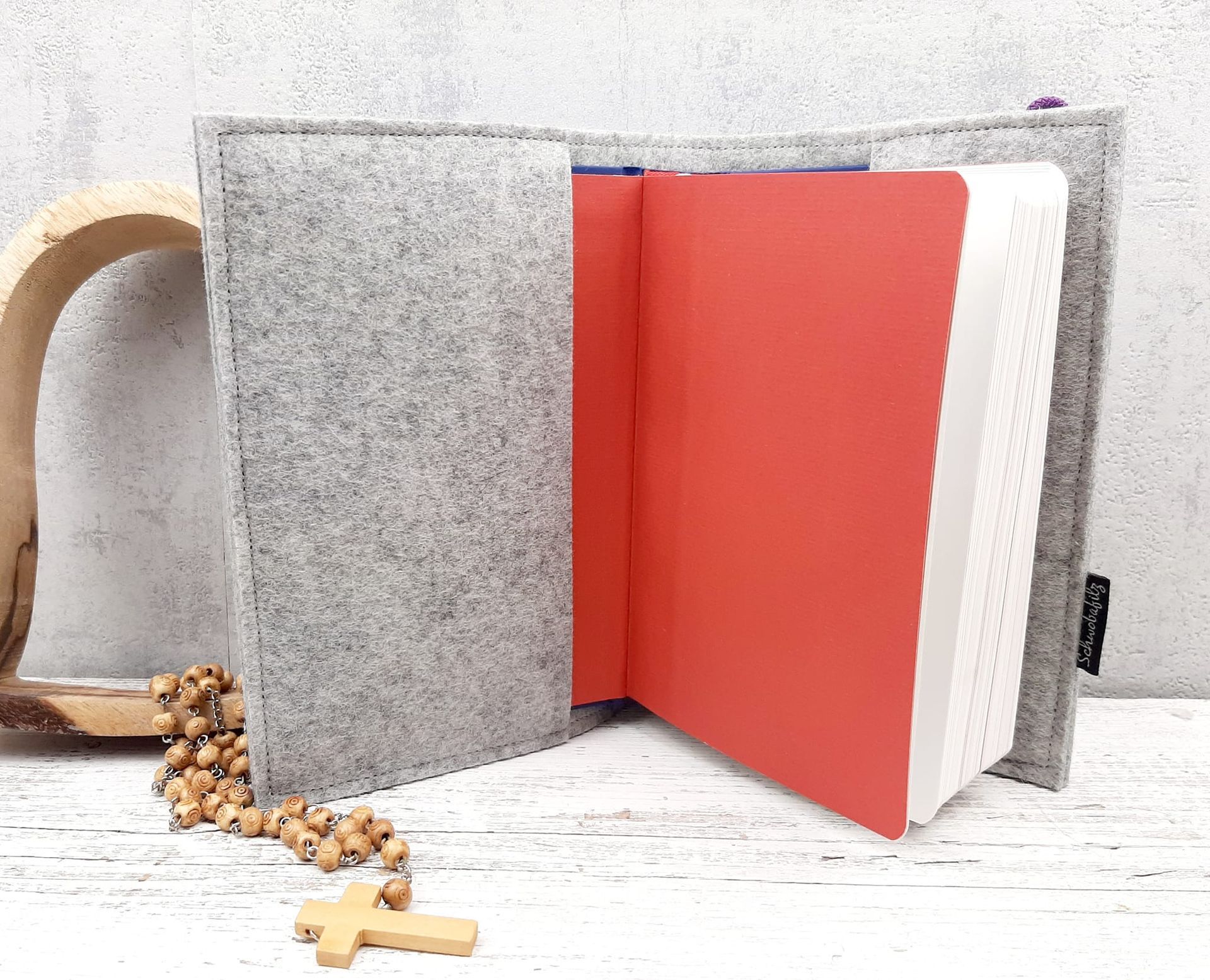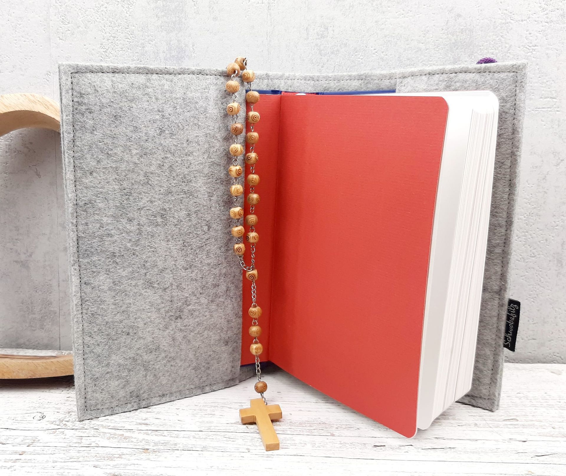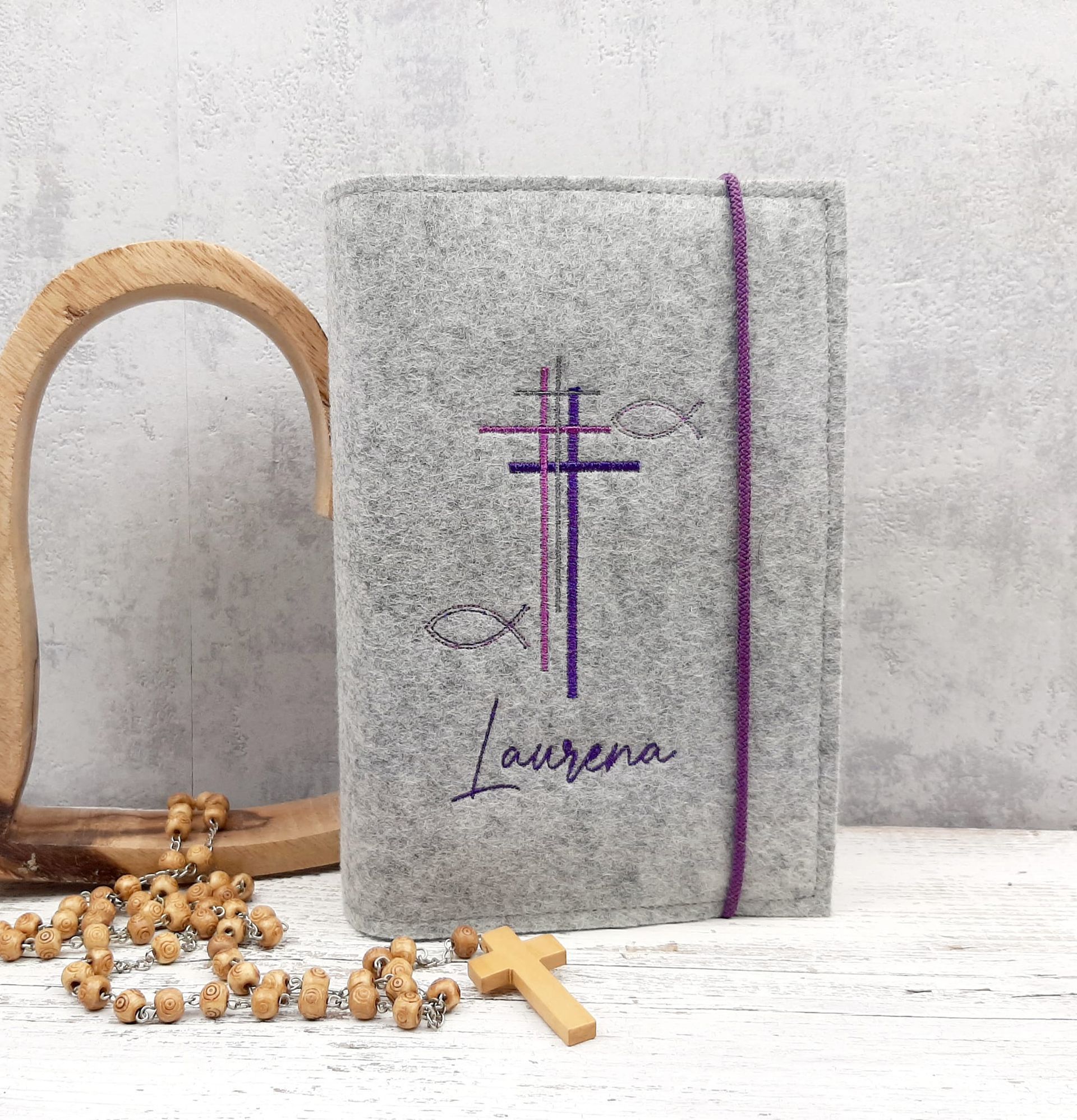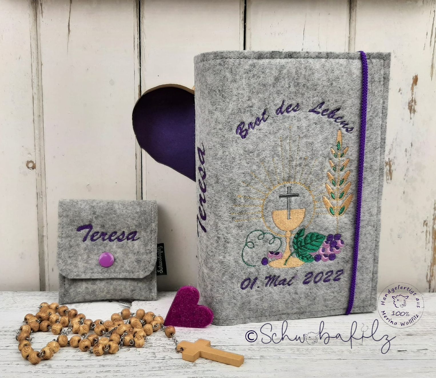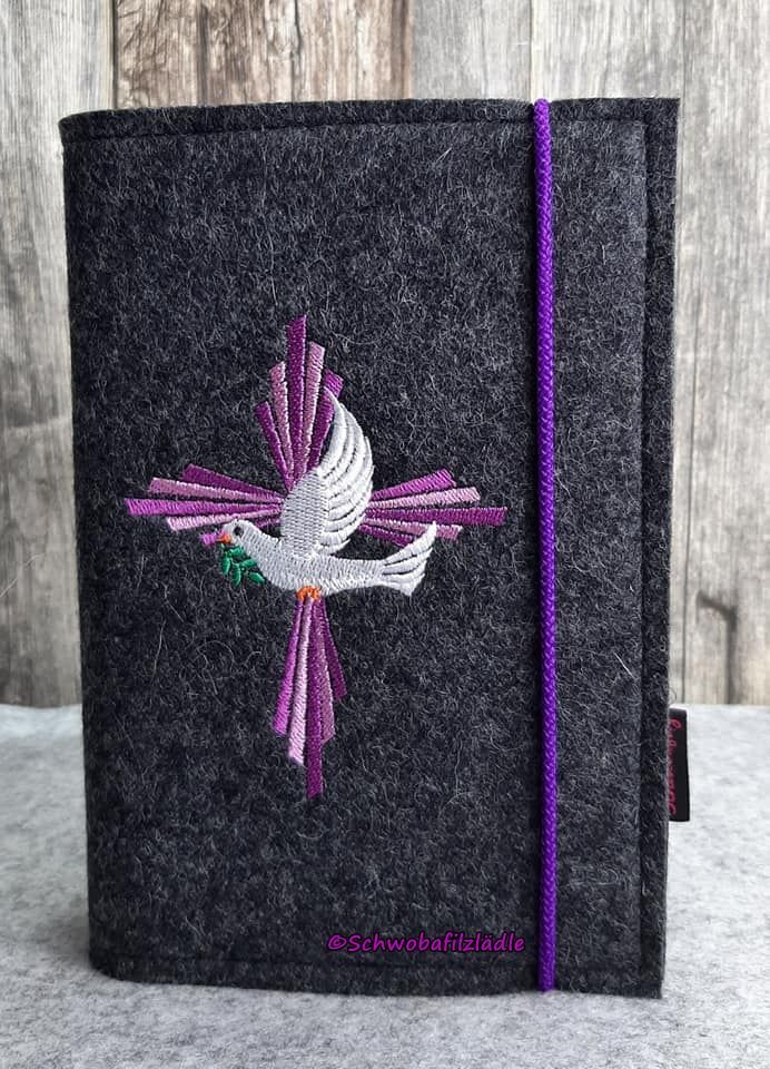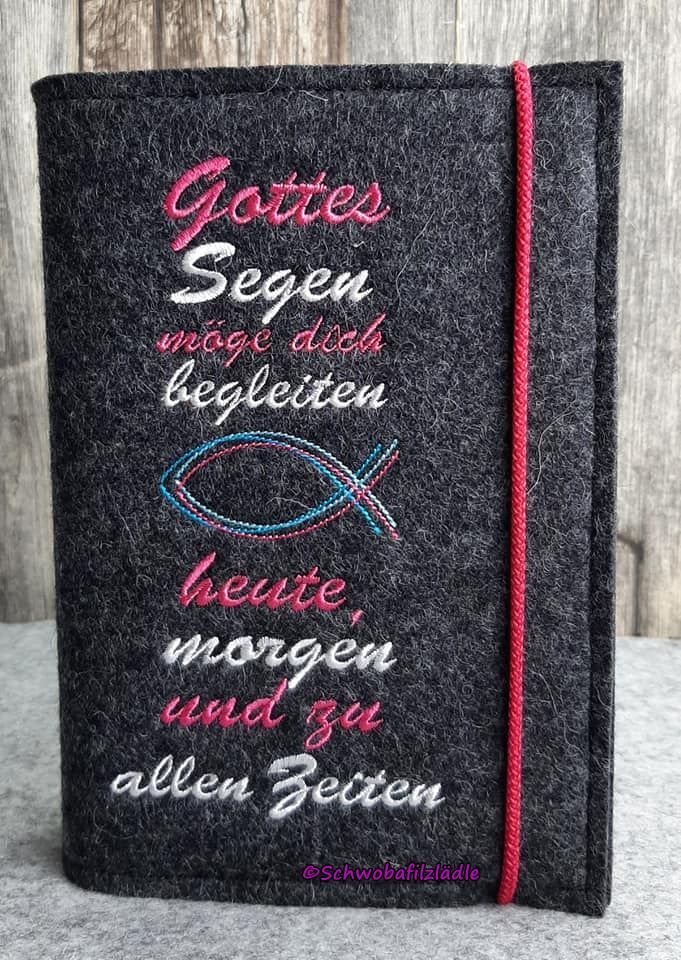 Diese handgefertigte Gotteslob- oder Gesangbuchhülle aus 100% Wollfilz ist das perfekte Geschenk für besondere Anlässe wie Kommunion oder Konfirmation.